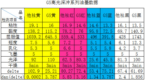 结论 1、GS系列油墨转移性很好,耐印率高。 2、加工性能好,柔韧性佳。 3、耐溶剂能力突出,可以胜任湿套工艺。 4、抗蒸煮能力强,可以做需要蒸煮工艺的产品。